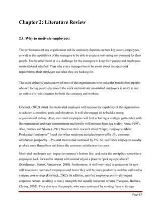 -Good productivity and performance -Excellent customer relations -Attract new customers -Financial stability -Good reputation. You should chose at least one of these recognised motivation theories and describe the main features. Review and update their job descriptions talk to them and watch them working.